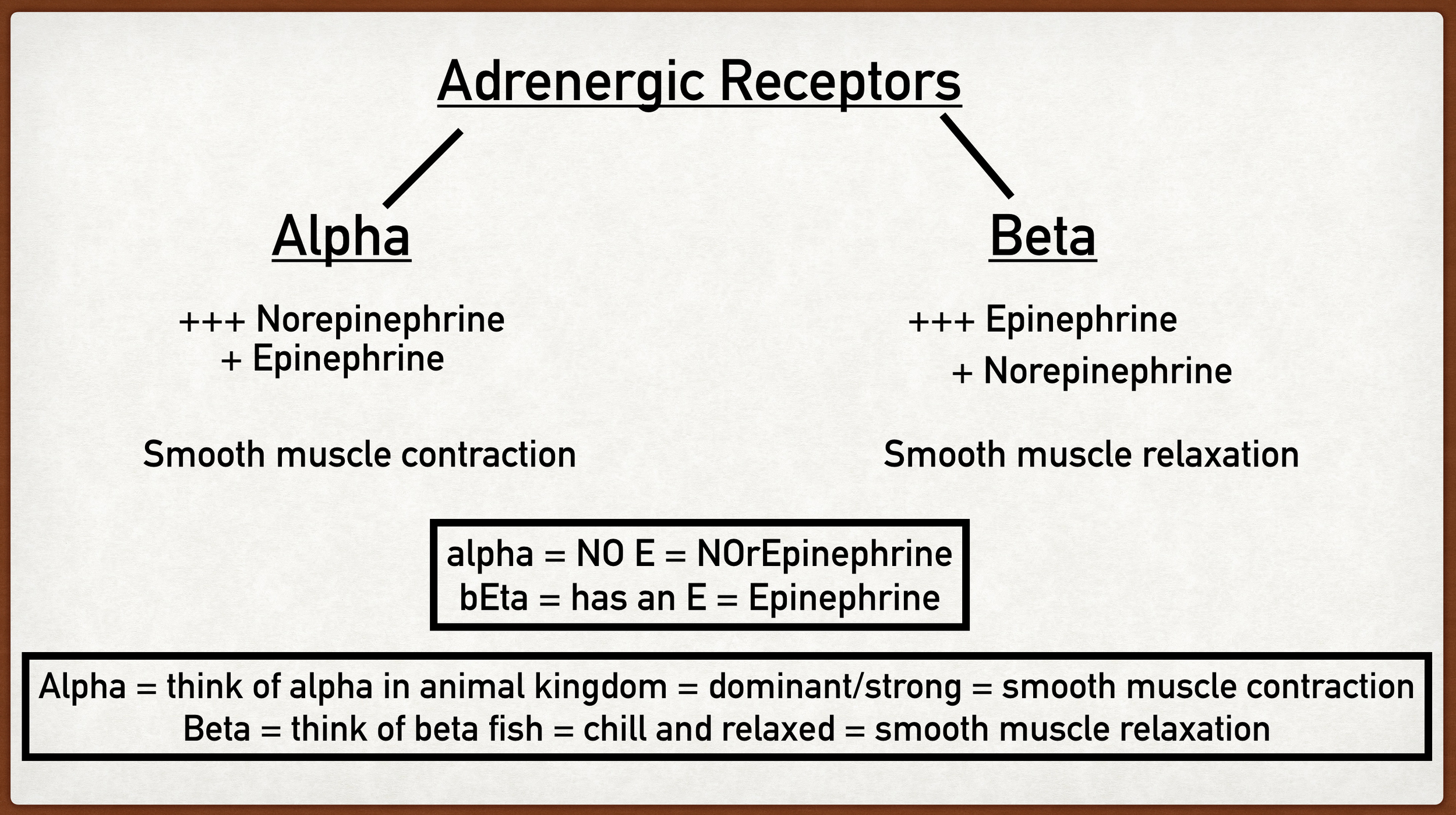 Below are some memory tricks to help you remember receptor affinity and the effect each receptor has on smooth muscles.
