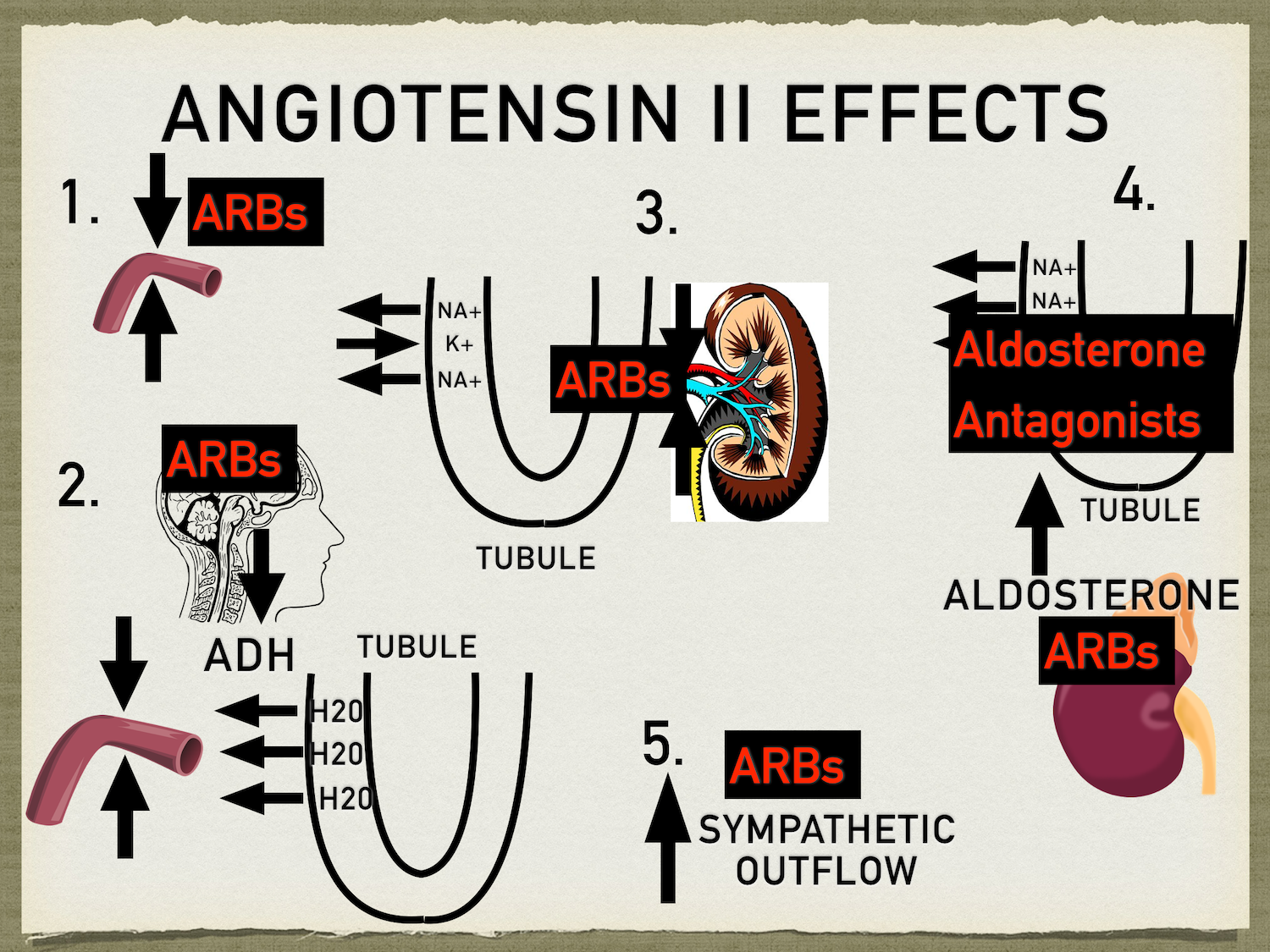 You can appreciate how medications such as ACE inhibitors, angiotensin II receptor blockers (ARBs), and aldosterone antagonists can be useful in treating hypertension, CHF, or renal complications from diabetes.